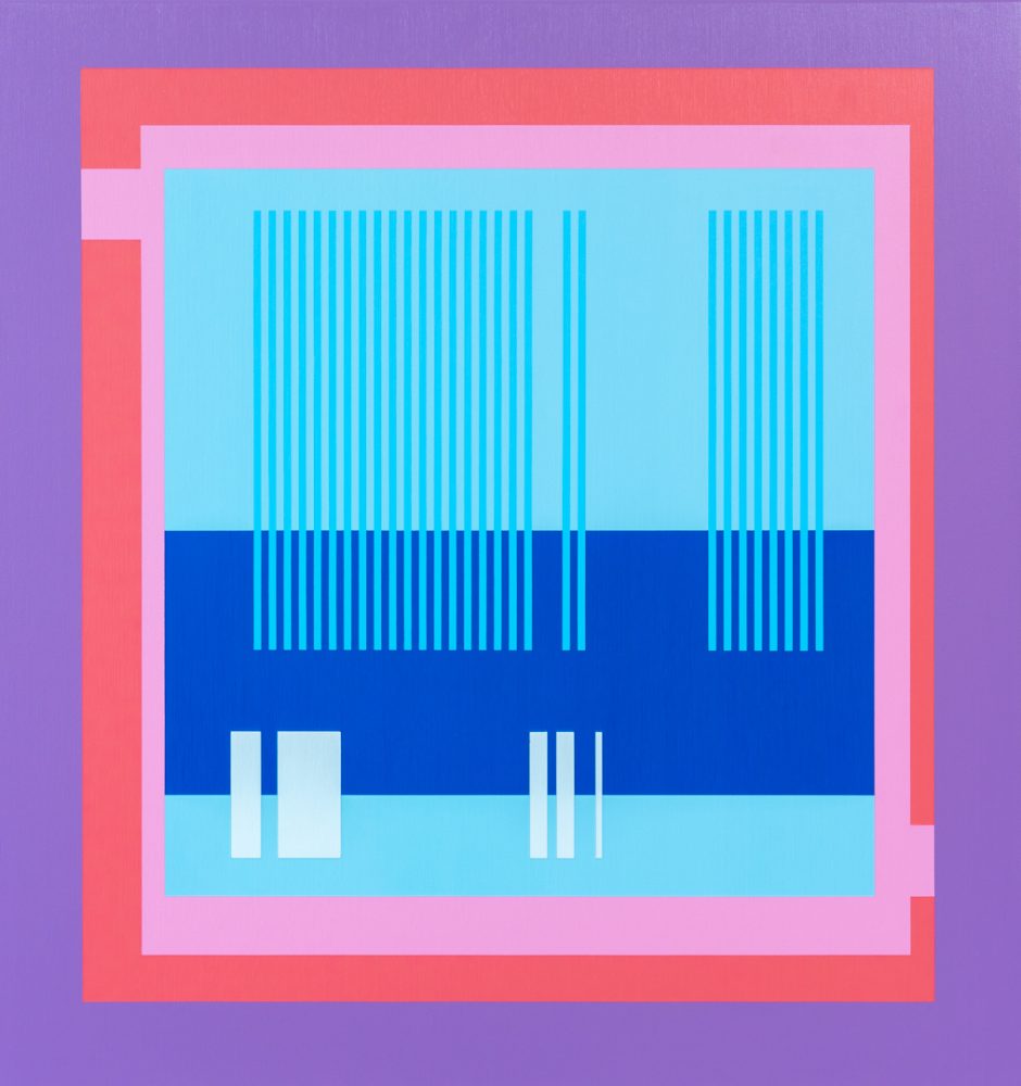 Brook’s current body of paintings draws on visual languages found in our online and urban environments. They are a response to both the pervasive digital algorithms and predictive systems that influence our current Western social and economic cultures, and the ordered abstract patterns found in contemporary architecture.