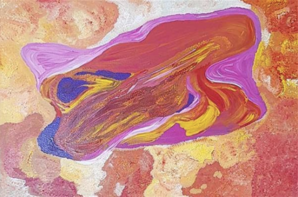 I used to muck around scribbling, drawing little houses with my kids. My children tell me to join the old people here at the Art Centre, save me from worrying, take my mind off things. It’s also good to be alongside family members at the Art Centre working, creating and learning together.”