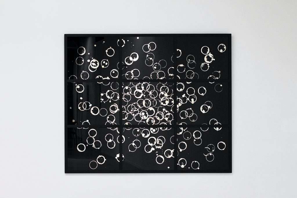 Hand silvered glass, enamel pigment, steel